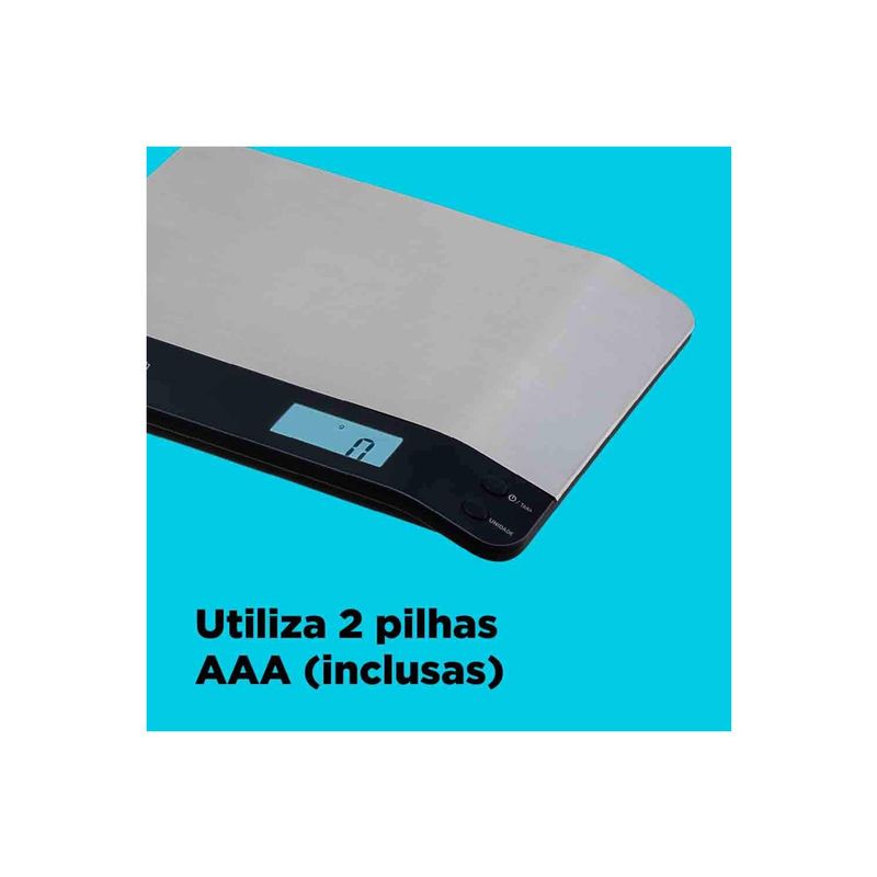 Capacidade para pesar até 5 kg, com precisão de 1 grama;