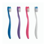 A Escova Infantil Dino possui cerdas com corte reto e pontas arredondadas, além de cabo com textura que proporciona segurança e conforto durante a escovação.