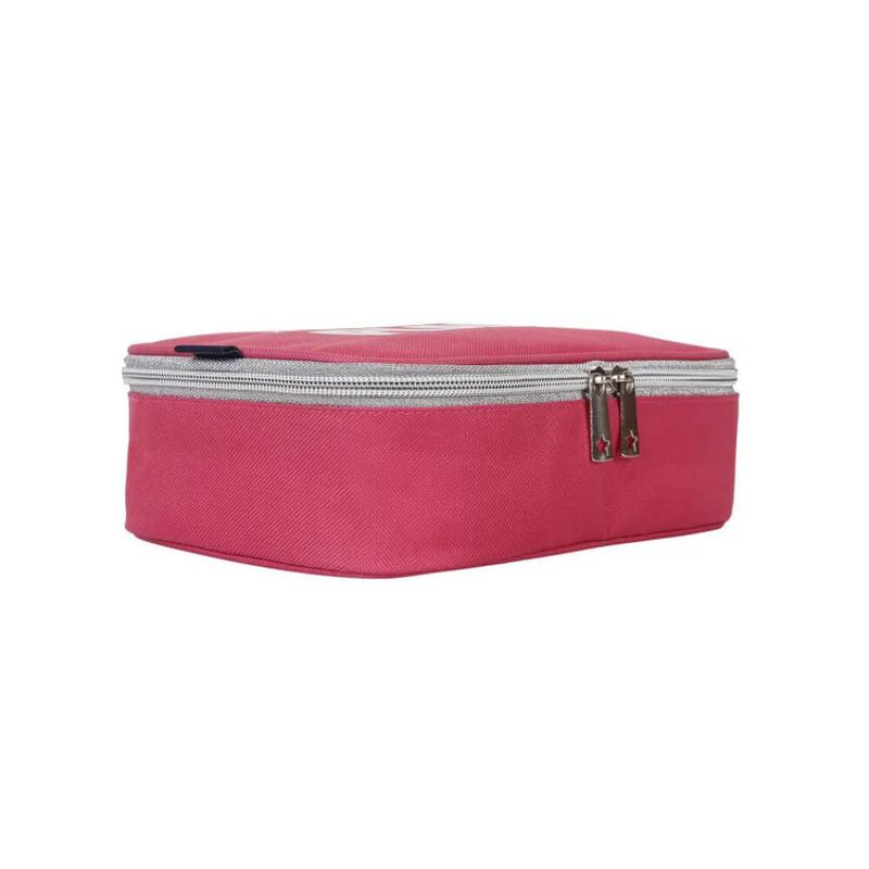 Estojo com capacidade para 100 canetas, divisórias com elástico, bolso interno com zíper, todo rosa, logo holográfico, espaçoso, ideal para organizar canetas, lápis, notas adesivas e outros acessórios de papelaria.