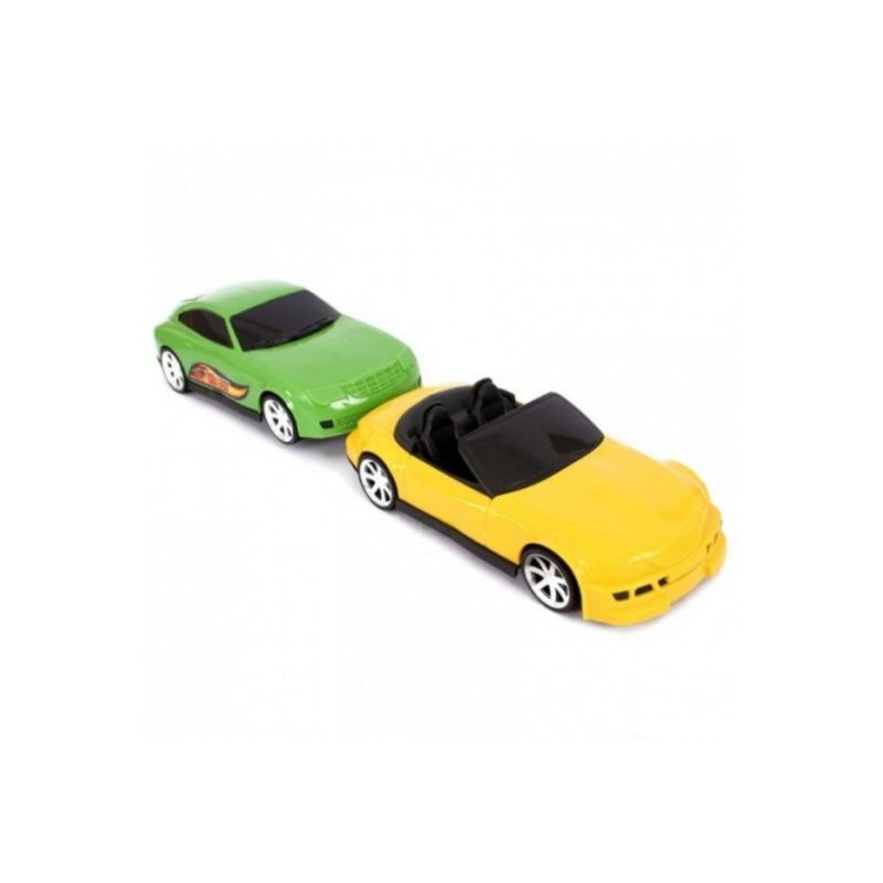 Contém duas peças, sendo um carrinho conversível e um de corrida, em cores sortidas. Possuem rodas livres cromadas.